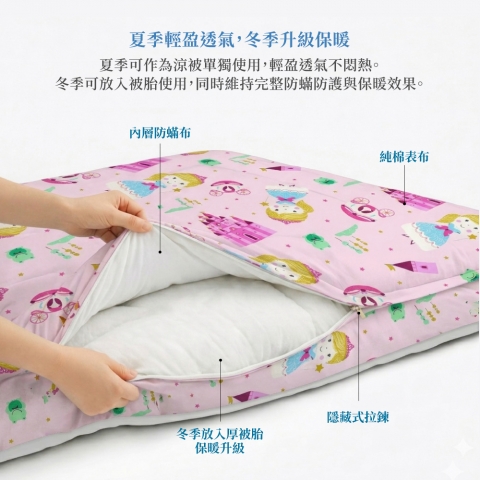 夏天可直接當涼被使用,冬天可套入被胎增加保暖度,一年四季皆實用。